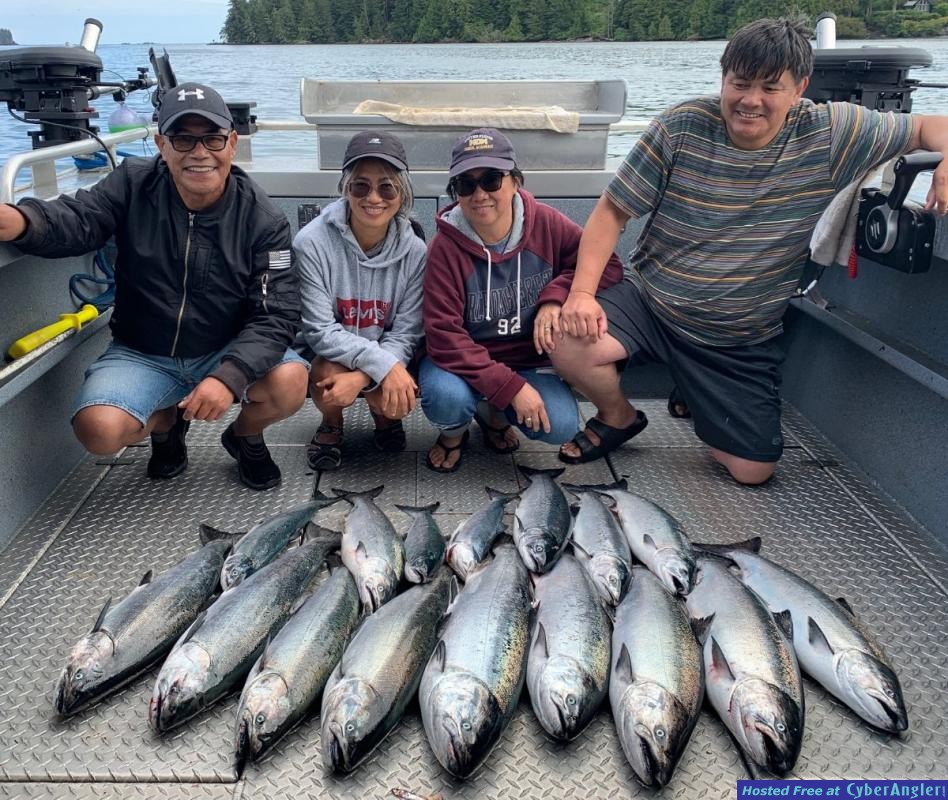 If any of you are coming fishing in Ucluelet and staying for 4 plus nights during the summer we have a property where you can park trailers and we have different sized cabins which can handle groups. If you want to fish with us we also do packages and our 3 day package has 50 lbs a day guarantee. We donate part of the package prices to the local fish hatchery.