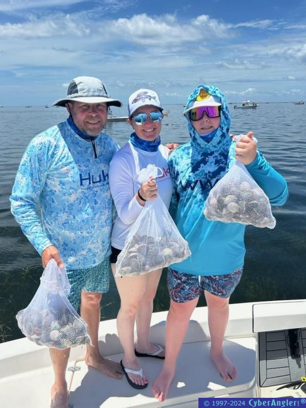 Scallop Season runs through September 24th so there's still plenty of time to get your scallop fill in this summer. For those folks have never tried it or are wanting to know what it's all about we have numerous pages on our website that shed light on this extremely fun summer activity. The best part of scalloping is that it's extremely family friendly and requires little to no experience at all. If you can swim you can scallop!!!!