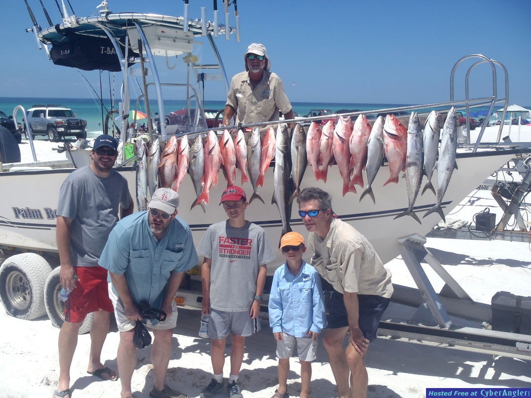 It's that time of the year when I have no time. The weather is great, the fish are biting and there are lots of folks that want to go on the water. I am up at 3:30, on the beach at 5, finishing up at 6:30-7 and in bed by 8:30. It's been a while since I wrote a report but this is still gonna be kinda thin on words... I have been running the "other" boat with the federal permit so I can fish my folks past the 9 fence when the fish decide that's where we need to be. The red snapper bite has been hard a lot of days but we are still coming in with great boxes of fish, even on the short trips. Plenty of Kings, a few Mahi, Groupers and even some Cobia still around. The sailfish have showed the past 3 days as well. I have not been able to get one to the boat but my son, William , has got 2 the past 2 days on his kayak trips.