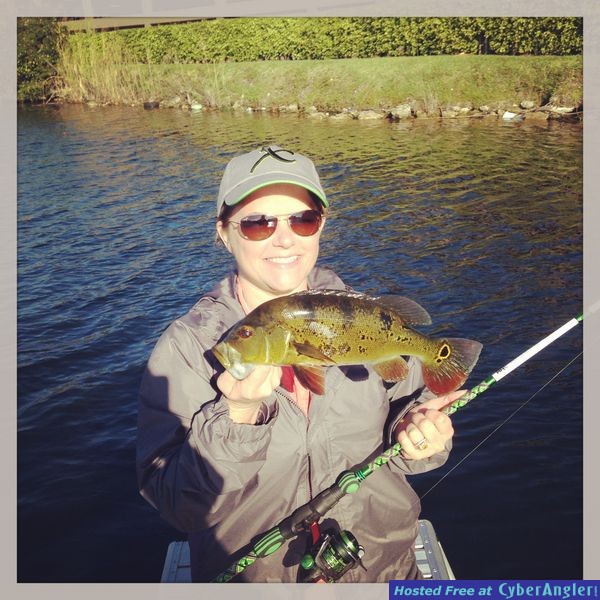 I had the opportunity to take out a couple of charters last week, and finally did some fish'n too. The first trip was with a couple who came down to try out our Peacock Bass fishery. Errin and her hubby Jeff wanted to try out some real cool custom rods they had built. They figured to get in a day of Peacock Bass fishing while in town for the boat show. Both rods they brought down got a good workout on the Peacocks. Jeff actually landed a beautiful six pounder with the one he was using. Good times with good people.