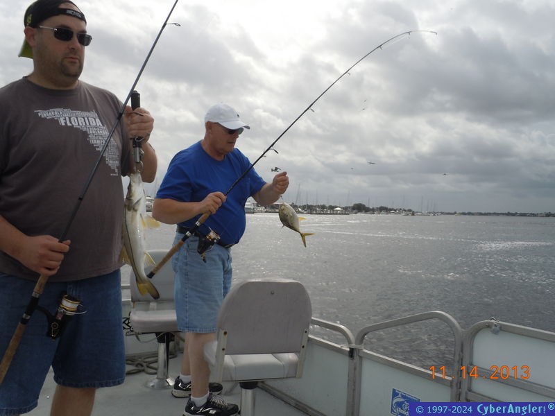Join Capt. Bob Bushholz for inshore fishing up to 6 people on the Indian and St. Lucie Rivers in beautiful Jensen Beach aboard the custom 24 foot pontoon boat "Catch 22". Half,3/4 and full day charters plus night trips are available. We offer per-person rates on half day trips when possible. Rods, reels, bait and tackle, fishing licence provided. Just bring food and drink. Catch 22 has 7 swivel seats,9'sofa, large bimini top and is wheelchair friendly.