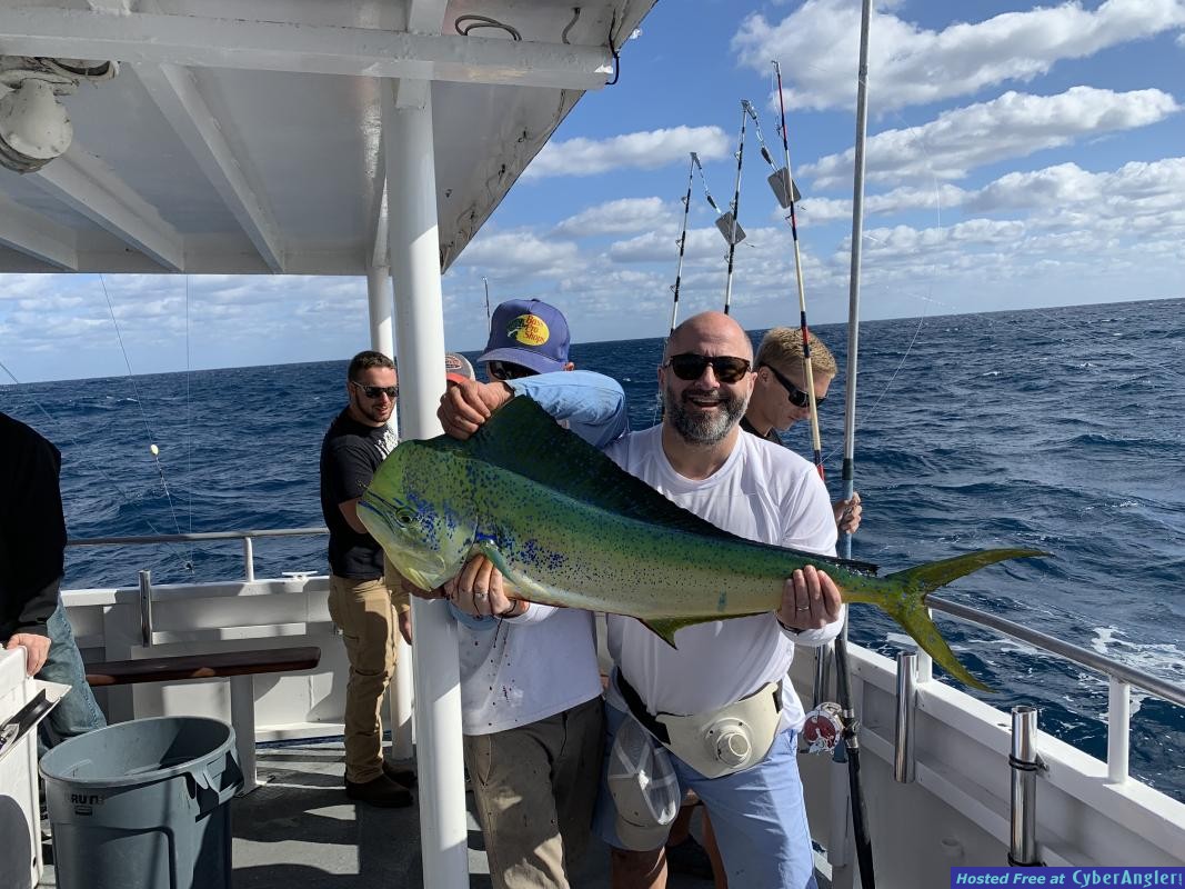 There's a great dolphin bite happening right now off the coast of Fort Lauderdale. We're finding them in 300-600ft of water, about 2-6 miles offshore. December is always one of our top months to go dolphin fishing in Fort Lauderdale. There are usually a few weedlines formed offshore, the best place to go to try to find dolphin fish. I like to put my trolling spread out as soon as we get into about 100ft of water, and then just keep trolling offshore until we find something good to fish next to.