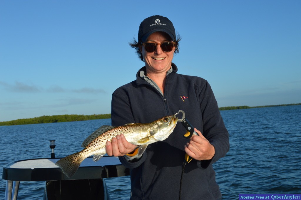 Here's a photo of Katie with her first spec trout, and first saltwater fish on a top water. Her Trout was carefully released after the photo, I encourage everyone to practice CPR (Catch-Photgraph-Release) to preserve the quality of our fisheries. They had a great time catching ladyfish by the dozen for about an hour until we decided to move.