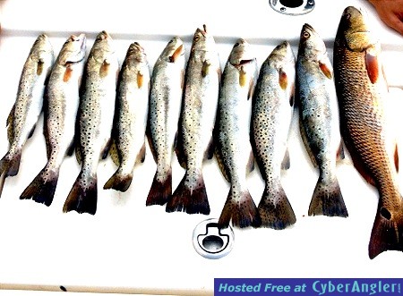 Redfish, Bull Redfish, speckled trout, flounder, pompano and shark