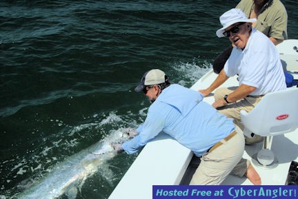John Isard and his son, Jesse, from Osprey, FL, tarpon fished with me on Tuesday, 6/8. They fought an estimated 90-pound fish to the boat along Longboat Key after about 45 minutes on a DOA Baitbuster. It was a hot fish, almost spooling us on its initial run! Fly anglers had lots of shots and several hard follows on a couple of trips, but no eats. When fly fishing for tarpon it is a matter of the right presentation to the right fish.