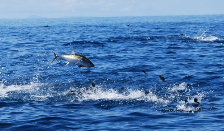 Still cruising the perimeter of these tuna schools are dorado of various shapes and sizes as well as the occasional drive-by wahoo. Almost daily we’ll get “swish-boom” wahoo hits on the light tuna lines which usually last between .25 and 4 seconds before the unsuspecting client reels in a hookless leader needing to be re-tied.