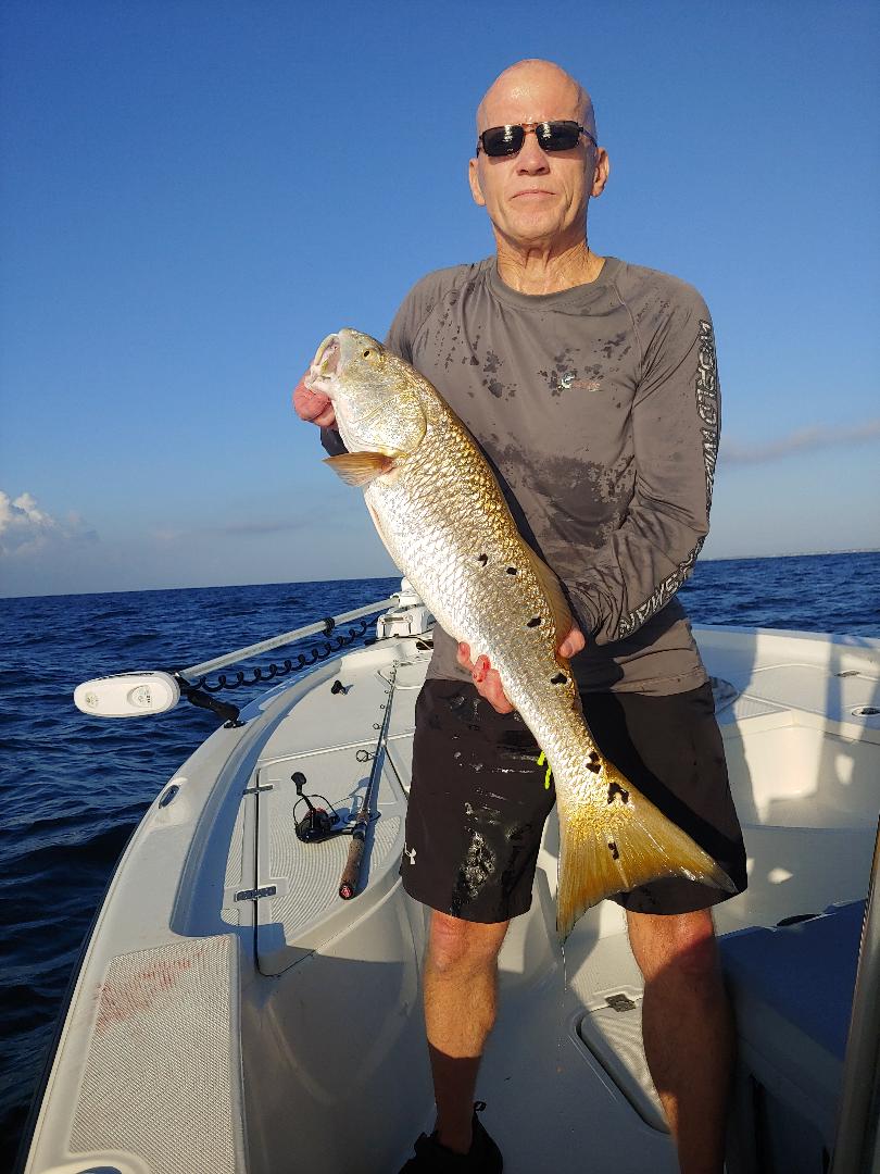While most of the week has been too rough to get offshore, the inshore fishing in Pensacola Florida has been pretty good! We are seeing a lot of redfish. Some Slot size redfish are being caught with the live bait on a Carolina rig. The bigger bull redfish are being caught on large curly tail grubs with a 1-2 oz. lead head. The bulls seem to be schooled up and have been giving clients the fight of a lifetime. This is a good sign of what is to come this fall with the redfish run in Pensacola Bay! If you want to catch multiple fish over 20 pounds get on the books now! It is sure to be a great season!